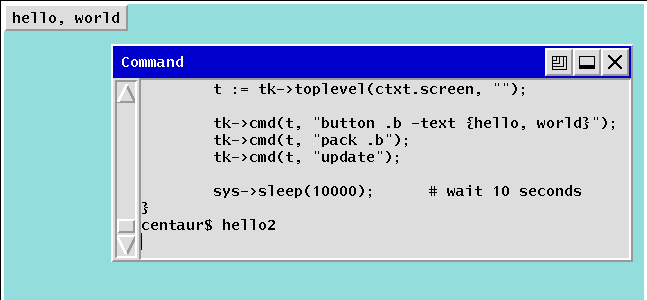 tk->cmd(t, "button .b -text {Delete me} -command {send cmd bye}");
